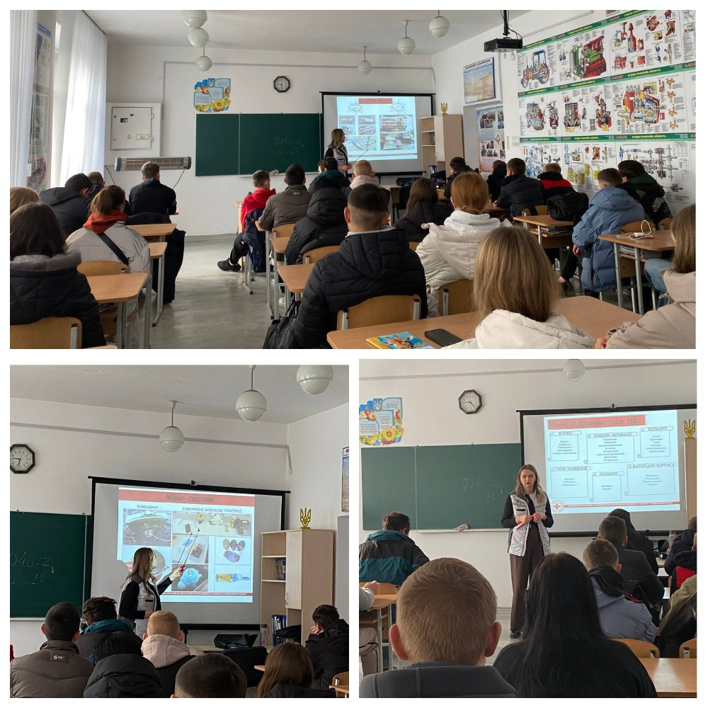 Фахівець з мінної безпеки в доступній формі інформувала здобувачів освіти нашого закладу про ризики, які несуть вибухові предмети, чому їх не можна торкатися, а також ознайомила присутніх з правилами безпечної поведінки, які збережуть життя і куди можна звертатися у випадку виявлення підозрілих предметів. Головними правилам в разі виявлення небезпечних предметів є: