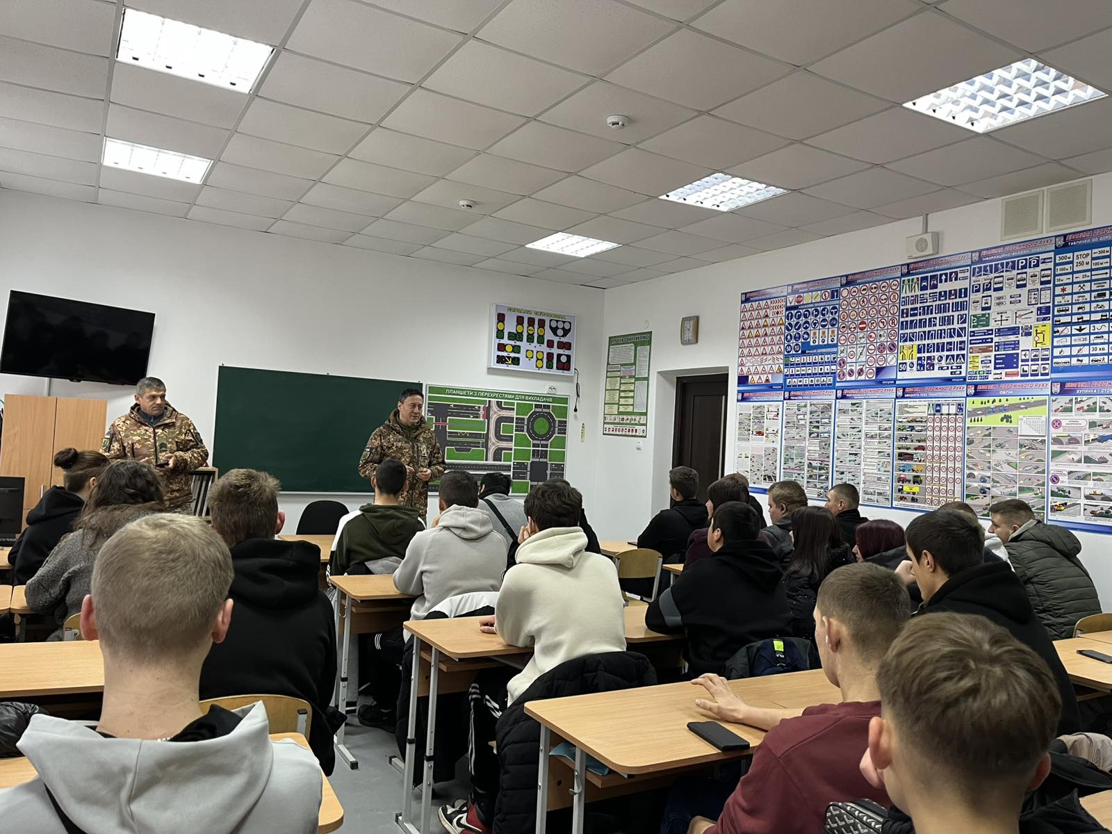 гірсько-лісистій місцевості. Розпочинав службу у 2016 році з участі в АТО. 2022 року мобілізувався, виконував завдання у Донецькій області. Поділився з учнями фотоматеріалами особистого архіву. Відповів на запитання аудиторії щодо перебування на передовій, озброєння, побуту, відведення з позицій, відносин з місцевими мешканцями. Звернув увагу на важливість вчасної евакуації поранених з поля бою, вміння надати домедичну допомогу, як собі, так і побратимам. На завершення заходу усі бажаючі могли зробити знімок із захисником України.